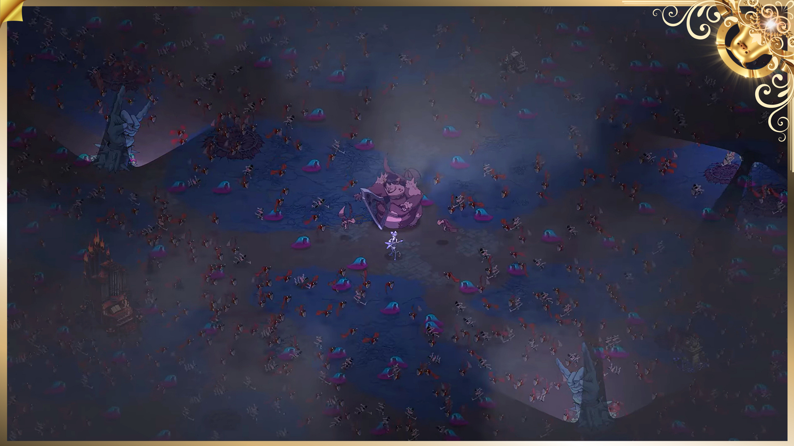 혼돈과 파괴가 교차하는 지옥의 연출은, 마치 애니메이션 콘서트를 보는 듯한 느낌을 준다.